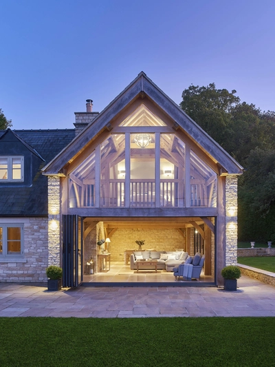 Having fallen in love with oak during the renovation of their Cotswold home, Claire and Phil thought a two-storey oak frame extension would perfectly suit their requirement to add a little extra space.