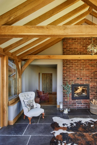 As we owned the land that’s adjacent to the lounge, there was the possibility for us to knock through to extend the room. However, we had admired the look and craftsmanship of local oak framed extensions for some time and decided we wanted to build our own.
