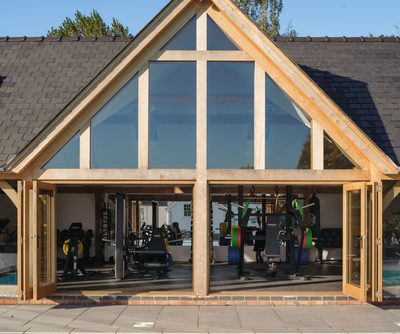 “Glazing was incorporated on the front of the outbuilding to capture the views out towards the pool and their home. It was also important that a large proportion of the building was fully clad, as wall space was required in the gym to house the couple’s equipment and mirrors. The addition rooflights in the roof space allowed for good ventilation and light internally,” continues George.