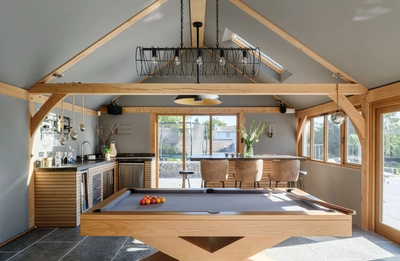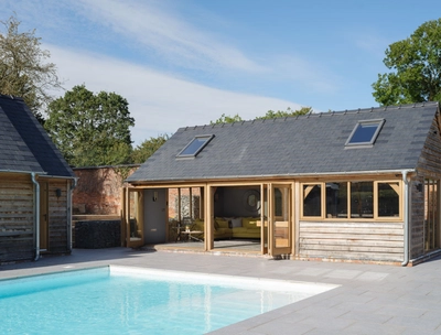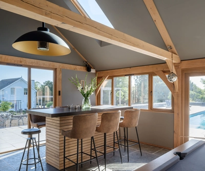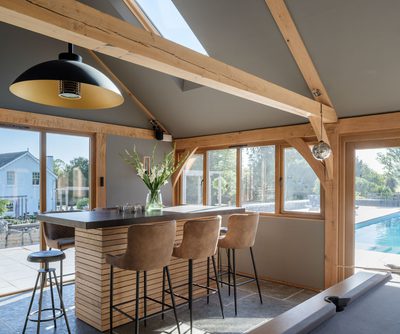 “In July 2019 we began the groundworks for the pool house, while the oak frame arrived in April 2020,” explains Mrs Gallimore. “The pool house was clad and glazed within eight weeks.”