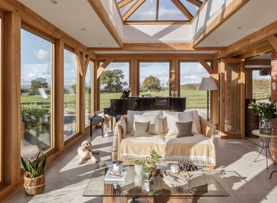 Julian and Phillipa Armitage wanted to add to their beautiful home in Shropshire. In practical terms, they wanted somewhere in which to house the grand piano Julian plays. A fully glazed 7m x 4m extension would not only provide the space they wanted, it would also afford them views across their four acres of land and the surrounding countryside beyond.