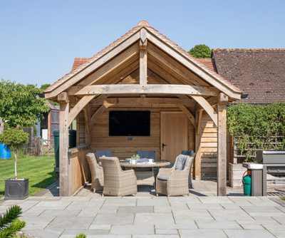 Creating a designated area in your garden where you eat at any time of the day, or just simply spend time and ‘be,’ is something you will thank yourself for throughout the rest of the year and beyond! In Warwickshire, the Grey family designed and constructed their own oak frame home office in their garden, shown below. It was important to them that their new space served multiple purposes, so they incorporated an alfresco living area, covered by an oak canopy. Continue reading their story…