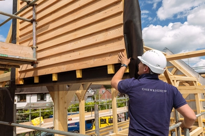 We managed to build our home within 8 months of starting the ground works. The biggest benefit was the dry shell process, that is erecting the oak frame and the WrightWall and WrightRoof encapsulation. This took only 11 days in total. We also chose to have the joinery and cladding installed in the Oakwrights workshops to the encapsulation panels, significantly reducing time on site.
